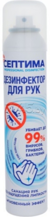 Антисептик-спрей для рук СЕПТИМА Нейтральный 200 см3 (4600104040610) - аэрозольное дезинфицирующее средство, предназначенное для мгновенной дезинфекции кожи от вирусов, бактерий и грибков. Применяется без использования воды, не требует смывания и не оставляет ощущения липкости! Убивает до 99% вирусов, бактерий и грибков. Использование дезинфицирующего антисептика для профилактики заболеваний гриппом, ОРВИ и других респираторных заболеваний позволяет снизить риск заражения, т. к. обеззараживает кожу, уничтожая бактерии и вирусы. Средство для дезинфекции рук СЕПТИМА работает мгновенно и эффективно!