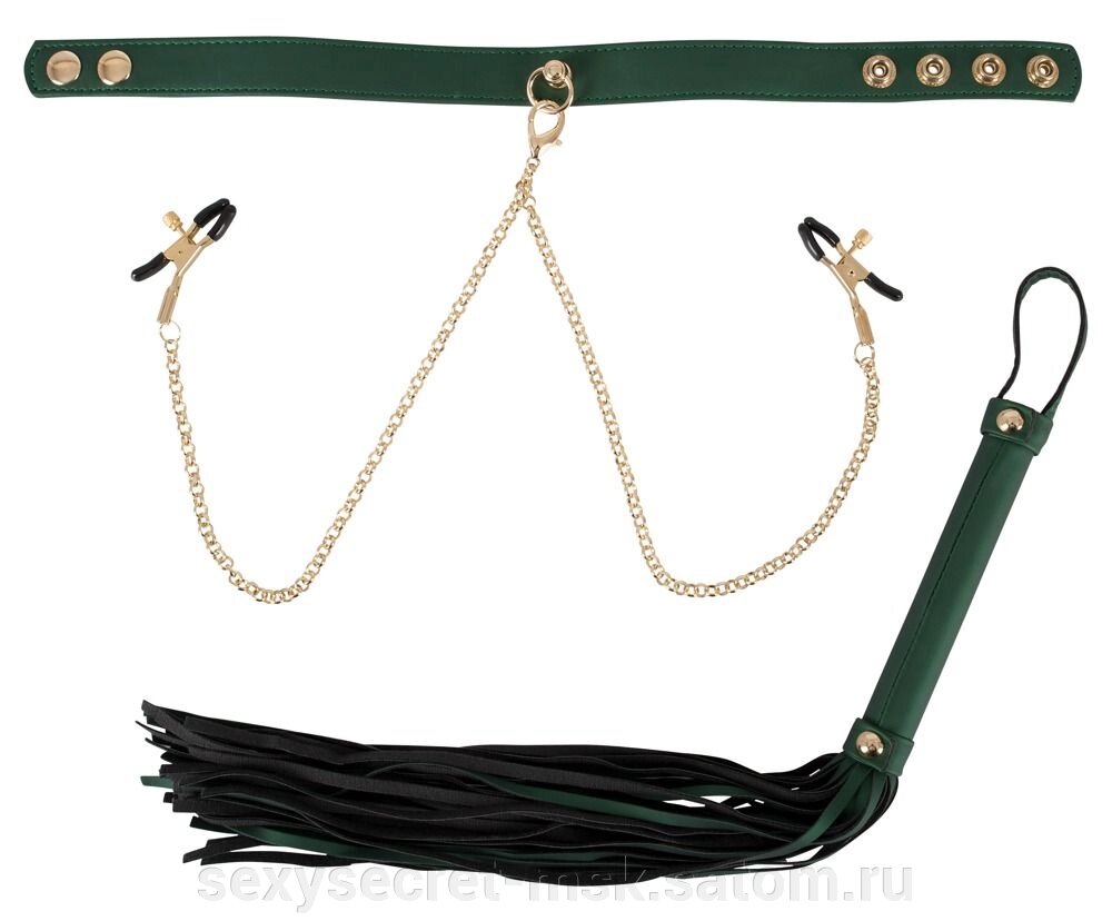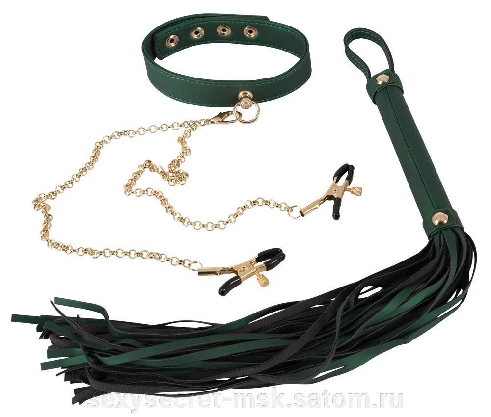 Зелёный комплект Fetish Set: ошейник, цепи с зажимами, плеть 24929114001