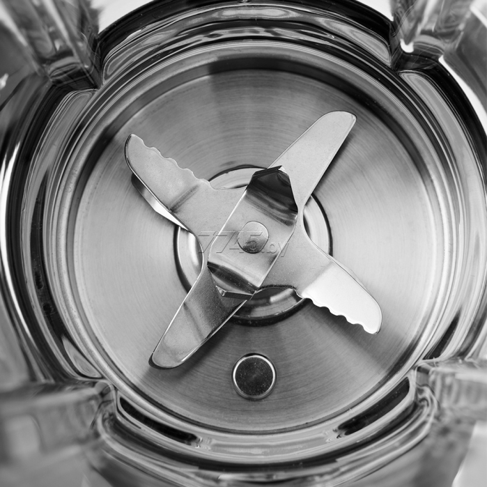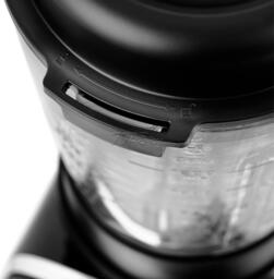 Блендер оснащён вместительной стеклянной чашей с мерной шкалой и объёмом 1,2 л. В крышке есть специальное отверстие, закрываемое колпачком, для добавления ингредиентов непосредственно во время работы. Колпачок можно использовать как мерной стакан.