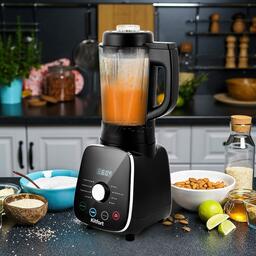 При нажатии кнопки "Нагрев" вы можете разогреть блюдо от 40 до 100 градусов с шагом 5 градусов для приготовления каш, супов, соусов, соевого молока и других блюд. Благодаря надёжному двигателю блендером можно пользоваться не только дома, но и в небольшом кафе. 4-лезвийный нож выполнен из высококачественной нержавеющей стали, обеспечивает превосходный результат измельчения и долгий срок службы.