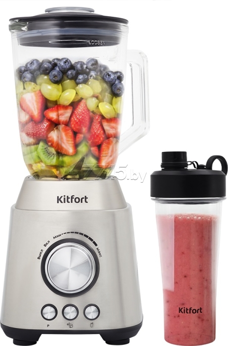 Блендер KITFORT KT-3011 предназначен для смешивания фруктовых и фитнес-напитков, молочных коктейлей, супов-пюре, соусов, детского питания. Комплектуется стеклянной чашей и пластиковой бутылкой Shake&Take. Он очень удобный и простой в эксплуатации.
