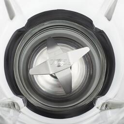 Блендер оснащён вместительной стеклянной чашей с мерной шкалой ёмкостью 1,5 л. В крышке есть специальное отверстие, закрываемое колпачком, для добавления ингредиентов непосредственно во время работы. Его также можно использовать как мерный стакан.