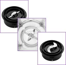 Чаша блендера ёмкостью 1,8 л, кофемолки и измельчителя ёмкостью 0,25 л выполнены из прочного стекла. Устройство легко разбирается и позволяет тщательно промывать его детали. В крышке чаши блендера есть отверстие для добавления ингредиентов непосредственно во время работы. Колпачок отверстия может использоваться как мерный стакан на 100 мл.