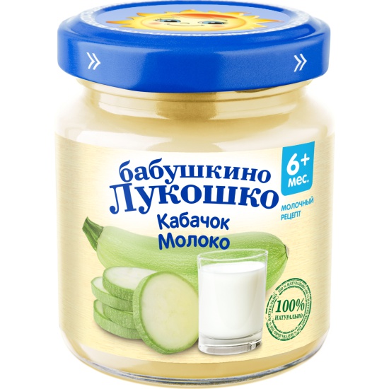 Пюре Бабушкино Лукошко Кабачок-молоко с 6 мес. 100 г. Кабачки способствуют нормальной работе кишечника, обладают общеукрепляющими свойствами, выводят из организма соли натрия и излишки холестерина. Молоко обогащает питание ребенка легкоусвояемым белком, жиром, кальцием, что является необходимым для полноценного роста и развития, а также для здоровья костей и зубов.