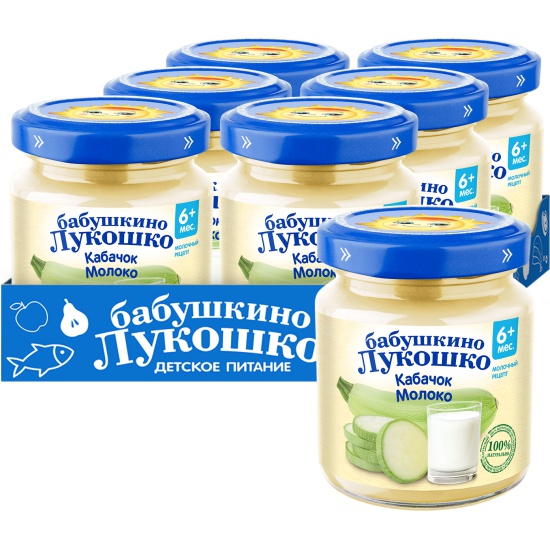 Пюре Бабушкино Лукошко Кабачок с Молоком, с 5 мес., 100 гр. (6 шт.) 4600728000168