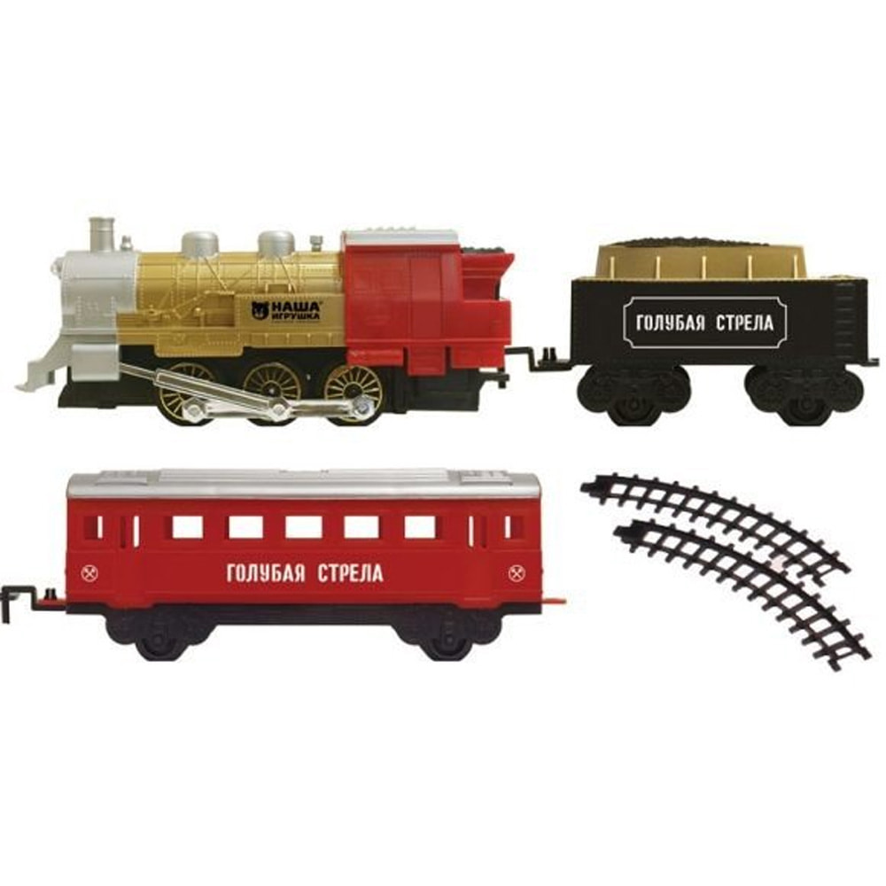 Железная дорога Голубая стрела 282см локомотив, тендер, вагон, свет, дым. 2092