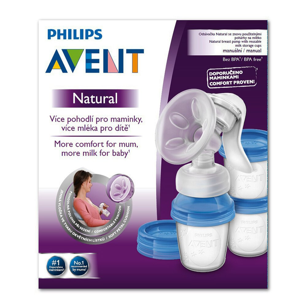 Ручной поршневой молокоотсос Philips Avent с системой хранения молока и мягкой массажной насадкой во время сцеживания стимулирует процесс сосания груди ребенком.