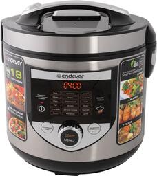 Мультиварка, мощность 860 Вт, объем 5 л, покрытие чаши антипригарное, электронное управление, количество программ 18, дисплей светодиодный (LED), таймер 24 ч, материал корпуса: сталь, пластик, регулировка температуры во время приготовления, ручная установка температуры, автоматические программы приготовления, автоподогрев.