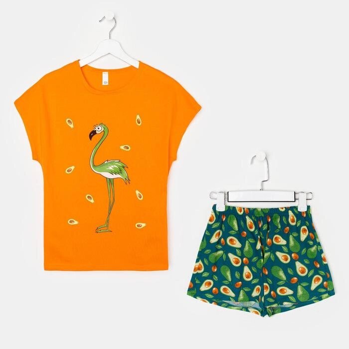 Пижама женская (футболка, шорты), цвет оранжевый/принт авокадо, размер 42
