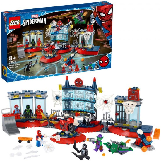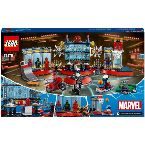 Конструктор LEGO® Marvel Super Heroes 76175 Нападение на мастерскую паукаПотрясающий набор «Нападение на мастерскую паука» LEGO® Marvel (76175) стал первой версией необычной штаб-квартиры супергероя от LEGO. Это наполовину штаб супергероя, нашпигованный современной техникой, наполовину — крутая комната тинейджера.Все, что нужно юному супергероюДаже супергероям иногда нужно отдыхать. Но только у Человека-паука такая невероятная комната отдыха. Здесь есть компьютер, PlayStation, баскетбольное кольцо с механизмом вбрасывания мячей, рампой для скейтборда и зоной с напитками. Это же настоящая «берлога» тинейджера. Но не все так просто. Это также и высокотехнологичная штаб-квартира супергероя, где хранится камера Питера Паркера, его оборудование для тренировок, железный костюм Человека-паука и его оружие. Здесь даже есть тюремная камера, которая очень пригодится, когда суперзлодеи Зеленый гоблин и Веном решат вломиться к Человеку-пауку в гости.В наборе «Нападение на мастерскую паука» LEGO® Marvel Spider-Man (76175) есть все, что нужно подростку-супергерою, ведь это первая версия высокотехнологичной штаб-квартиры Человека-паука из кубиков LEGO.В наборе мини-фигурки Человека-паука, Зеленого гоблина и Венома, а также компьютер, PlayStation, зона для баскетбола, скейтборд с рампой, зона с напитками, фотоаппарат, оборудование для тренировок, мотоцикл, костюм Железного паука, оружие и тюремная камера.Юные супергерои будут с удовольствием играть с Человеком-пауком в его штаб-квартире. Но, когда сюда ворвутся два суперзлодея, придется драться. Чтобы всех спасти, детям пригодятся и хитроумные устройства, и их собственная смекалка.Идеальный подарок на день рождения или любой другой праздник для поклонников комиксов Marvel старше 8 лет, которые хотели бы продемонстрировать всем вокруг штаб-квартиру Человека-паука из новейшего набора LEGO®.Размер впечатляющей модели штаб-квартиры Человека-паука: 14 см х 41 см х 17 см. Набор легко объединить с другими наборами LEGO® Marvel Spider-Man.В набор входят дополнительные аксессуары для веселых игр: несколько сетей из паутины, экраны систем безопасности и управляемое вручную устройство для подачи баскетбольных мячей.Все игровые наборы LEGO® Marvel Spider-Man — это классные коллекционные подарки, дающие детям возможность пережить любимые моменты фильмов о супергероях и создать собственную фантастическую историю.Все элементы LEGO®, произведенные с 1958 года, соответствуют самым строгим отраслевым стандартам, поэтому они совершенно безопасны и совместимы друг с другом, отлично соединяются и разъединяются.Все элементы LEGO® испытывают на падения, нагрев, удары и скручивание, чтобы убедиться в их полном соответствии высоким международным стандартам безопасности.