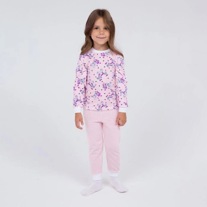 Пижама для девочки НАЧЁС, цвет белый/розовый, рост 98 см