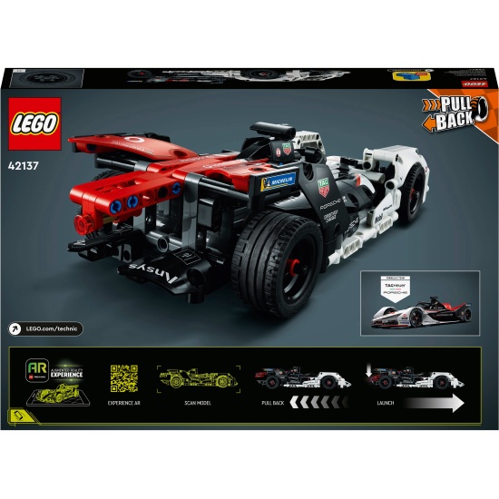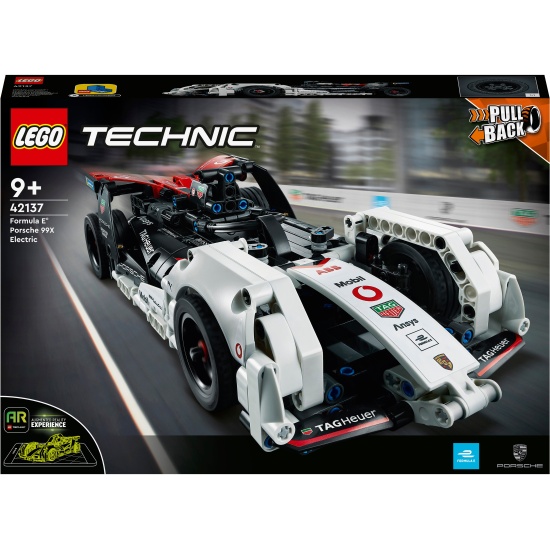 Конструктор LEGO® Technic™ 42137 Formula E® Porsche 99X ElectricЭтот набор Formula E Porsche 99X Electric LEGO Technic (42137) с быстрой машиной с инерционным мотором станет лучшим подарком для поклонников гонок Formula E и Porsche в возрасте от 9 лет. Детям понравится захватывающая сборка гоночного болида Porsche во всех деталях, а с помощью двух инерционных моторов и приложения LEGO Technic AR они смогут погрузиться в азарт гонок. Оживите гонку. Приложение позволяет детям погрузиться в роль профессионального пилота Porsche Formula E с помощью дополненной реальности. Они смогут выбирать трассу для гонки, продумывать распределение энергии и использовать все свое мастерство, чтобы пройти гонку. Используя два инерционных мотора, дети смогут решить, насколько зарядить энергию машины, а потом отправить машину в путь по гоночной трассе в дополненной реальности! Отличное введение в инженерное дело. Сборные модели LEGO Technic оснащены реалистичными подвижными деталями и механизмами, призванными в доступной форме познакомить конструкторов с миром инженерного искусства.Соберите икону гонок Formula E — поклонникам автоспорта понравится собирать этот набор Formula E Porsche 99X Electric LEGO Technic (42137).Дополненная реальность - Загрузите приложение LEGO Technic AR, чтобы отсканировать модель. Затем используйте инерционный мотор, чтобы запустить машину ногой и увидеть, как она оживает в захватывающих гонках.Инерционные моторы — используя 2 инерционных мотора, дети смогут решить, сколько энергии нужно дать игрушечному автомобилю, а потом выполнить идеальный старт гонки с помощью пускового механизма.Крутой способ играть — инерционные моторы сочетаются с приложением LEGO Technic AR. После сканирования автомобиля в приложении откатите его рукой назад, затем запустите ногой и наблюдайте за результатом.Реалистичный дизайн — эта сборная модель Porsche является детализированной копией реального болида Porsche Formula E с логотипами спонсоров.Идеально для любого поклонника гонок Formula E в возрасте от 9 лет — этот набор для сборки Porsche станет отличным подарком для детей, которые любят автомобили Porsche, гонки Formula E и игрушки с дополненной реальностью.Идеальный размер для игры — размеры этого автомобиля Porsche с инерционными двигателями составляют более 6 см в высоту, 31 см в длину и 12 см в ширину.Обучение в игре — во вселенной LEGO Technic вы найдете наборы продвинутого уровня, разработанные специально для поклонников LEGO, готовых оттачивать свои навыки сборки.Высокие стандарты качества — все элементы LEGO Technic соответствуют самым высоким отраслевым стандартам, поэтому они совершенно безопасны, совместимы друг с другом и надежно соединяются.Максимальная надежность — элементы LEGO Technic испытывают на падения, нагрев, удары и скручивание, чтобы убедиться в их соответствии строгим международным стандартам безопасности.