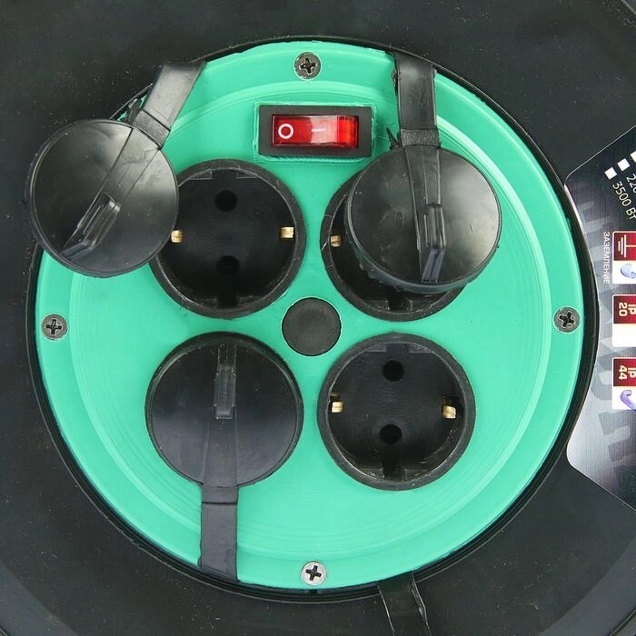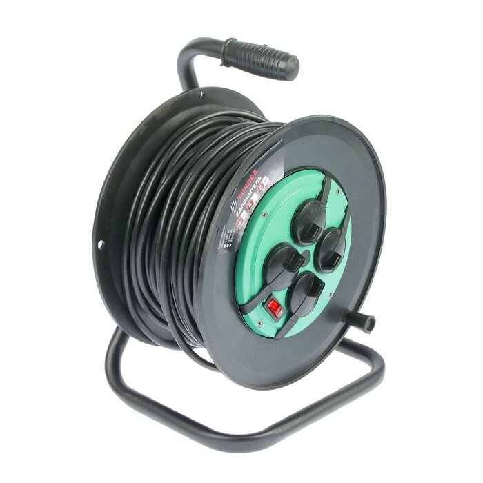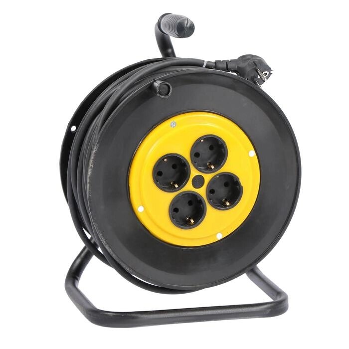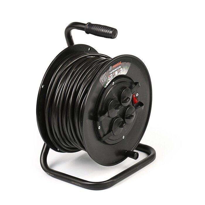 Удлинитель на катушке TUNDRA, 4 розетки, 50 м, 16 А, ПВС 3х1.5 мм2, с з/к, IP44,