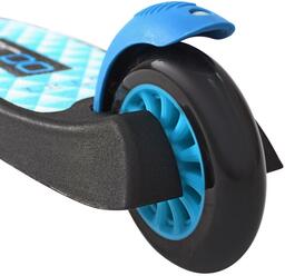 Детский самокат. Дека: 29.5x11 см. Материал: алюминиевый сплав. Максимальный вес пользователя: 50 кг. Полиуретановые колеса: 120x24 мм (передние), 100x24 мм (заднее). Жесткость: 82A. Подшипники: ABEC-5. Складной механизм. Регулируемая высота руля: 61/66/71.5/76 см. Вес: 2.5 кг.
