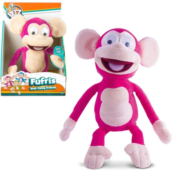 Интерактивная игрушка IMC Toys 94161 Club Petz Funny Обезьянка Fufris розоваяClub Petz Funny Обезьянка интерактивная смеющаяся, трясется в сидячем или лежачем положении. Периодически выдает нестандартные звуковые эффекты (пукает), мягконабивная с механизмом в пластиковом корпусе. Автовыключение. Работает от3 батареек АА (в комплекте)