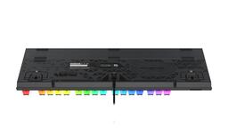 Освещение происходит снизу клавиатуры, поэтому свет вокруг клавиш и чаще специально освещены также символы на клавишах.