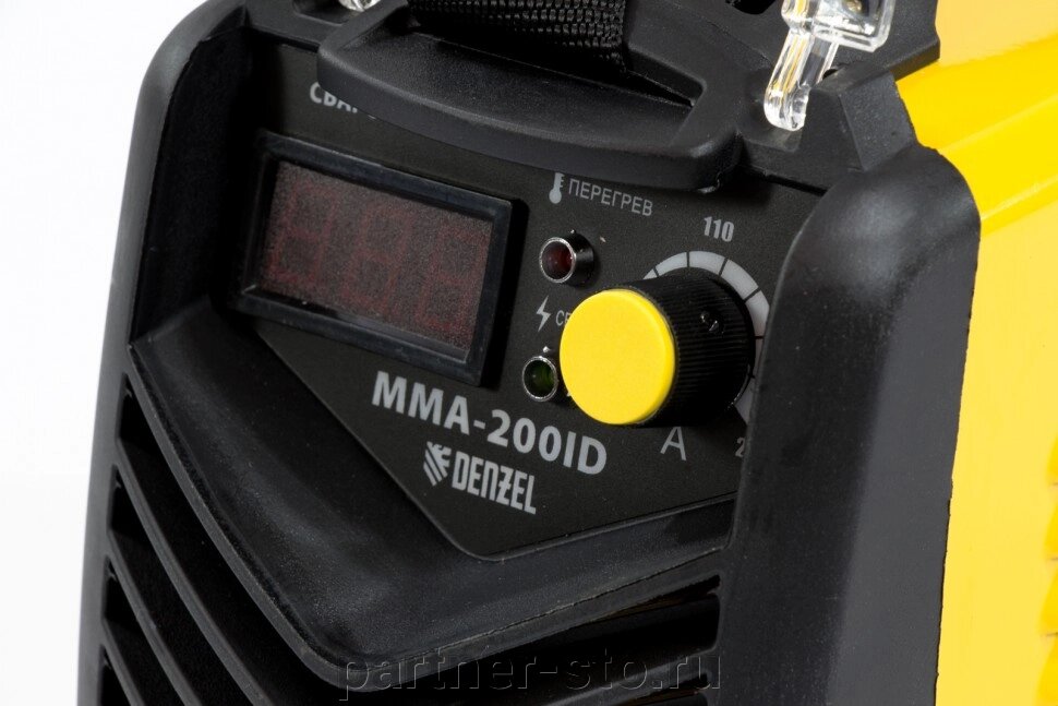 Аппарат инверторный дуговой сварки ММА-200ID, 200 А, ПВР 60%диаметр электрода 1.6-5 мм, провод 2 м Denzel