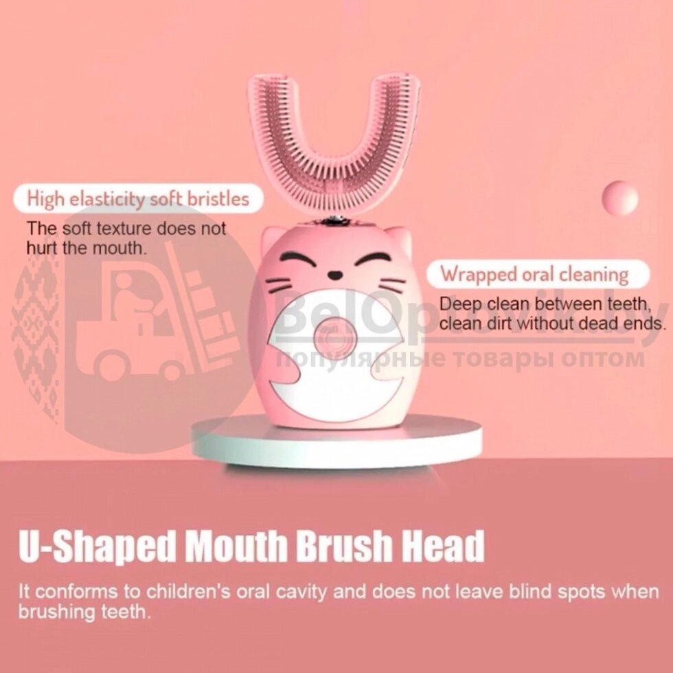 Детская электрическая зубная щетка Smart U-Shaped Childrens Toothbrush 360 градусов (3 режима работы) розовая
