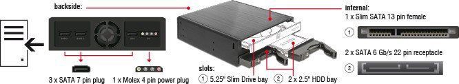 • Modelis 5.25″ Rack for Slim Drive + 2 x 2.5″ SATA