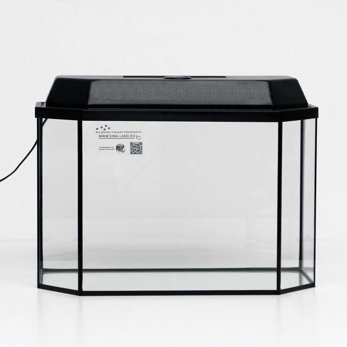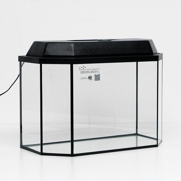 Аквариум панорамный с крышкой, 50 литров, 56 х 26 х 36/41 см, чёрный