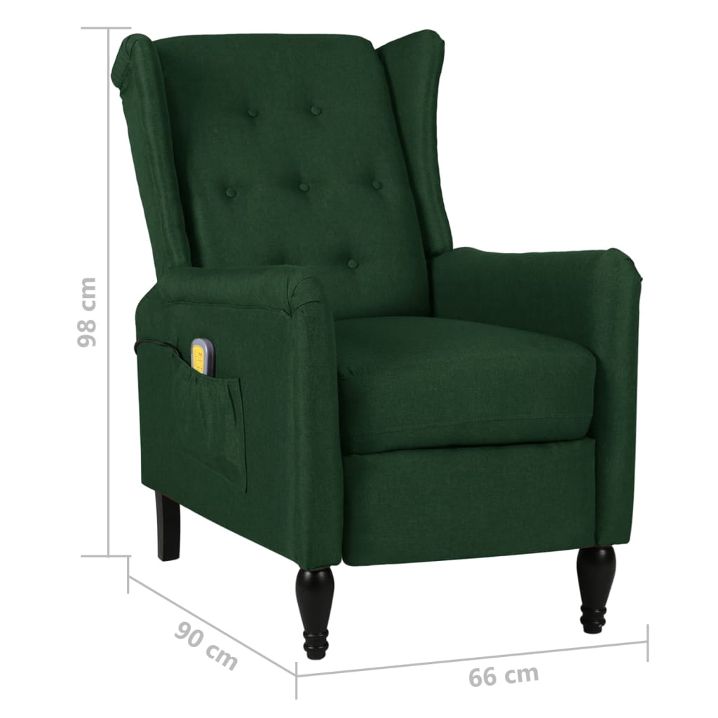 Fotelis VLX Massage Reclining 329336, tamsiai žalia, 90 cm x 66 cm x 98 cm