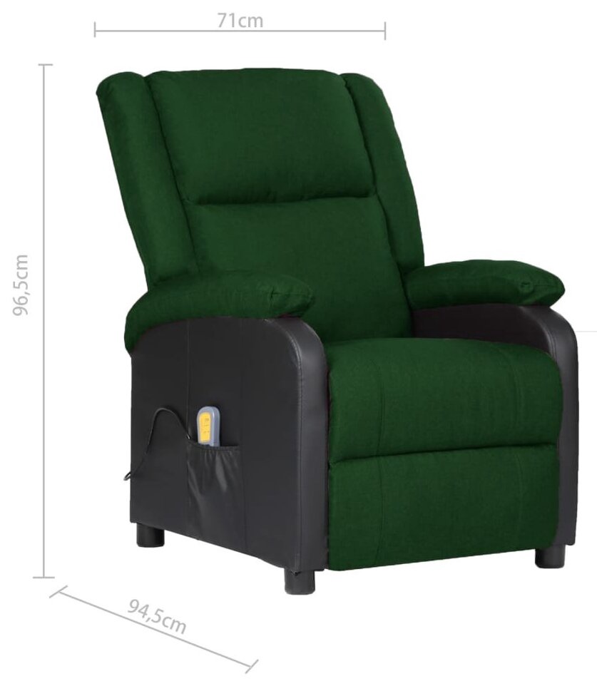 Fotelis VLX Massage Reclining 329501, tamsiai žalia, 94.5 cm x 71 cm x 96.5 cm
