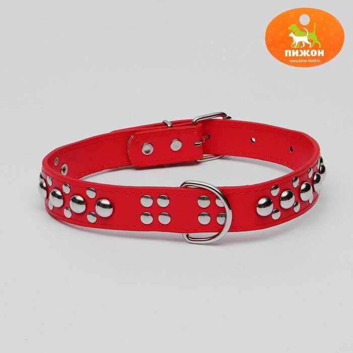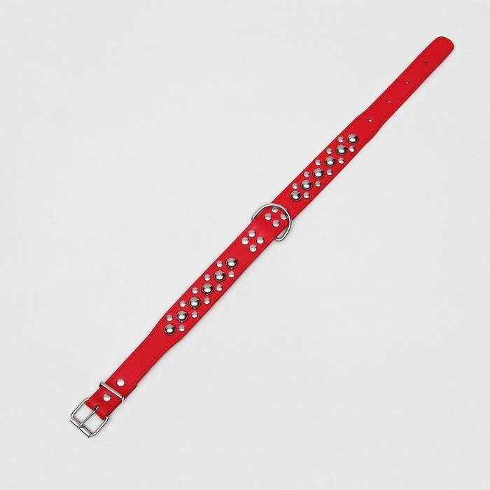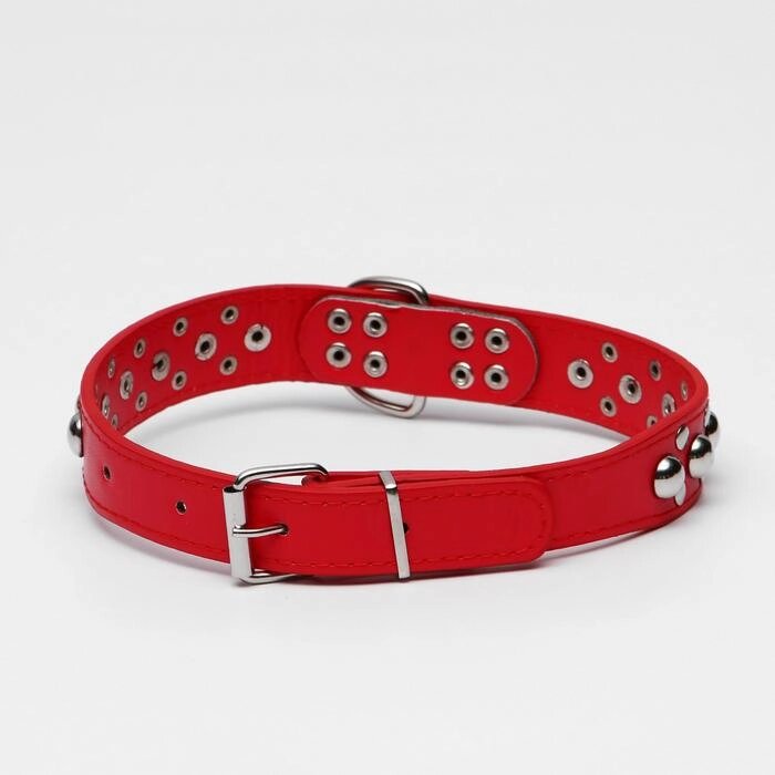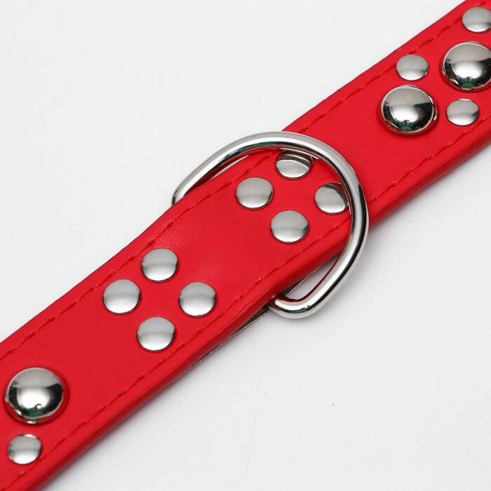Ошейник "Сириус", кожзам с заклёпками, 57 х 3 см, красный