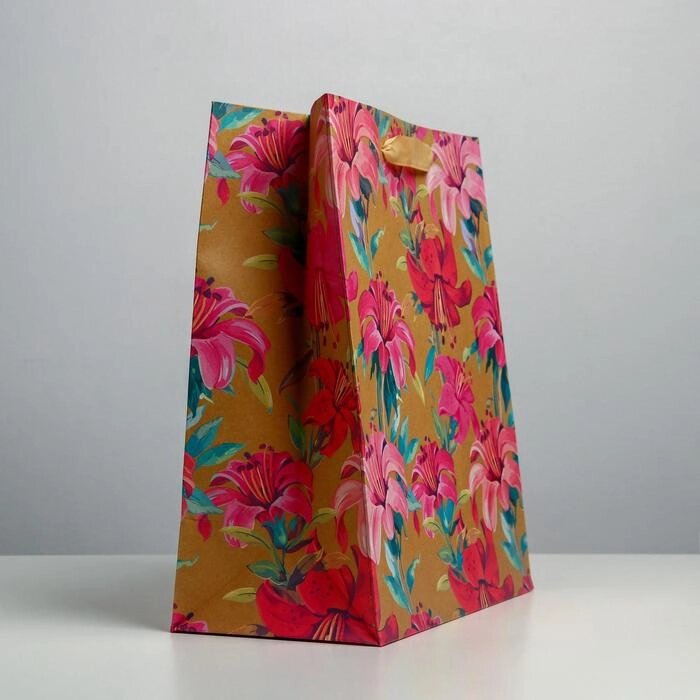 Пакет крафтовый вертикальный "Цветы", ML 23 х 27 х 11,5 см