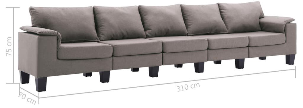 Sofa VLX 5-Seater 287109, šviesiai ruda, 70 x 310 x 75 cm