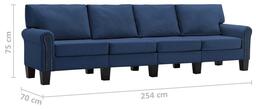 Sofa VLX 4-Seater 287174, mėlyna, 70 x 254 x 75 cm
