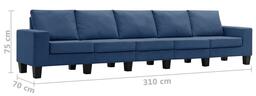 Sofa VLX 5-Seater 287144, mėlyna, 70 x 310 x 75 cm