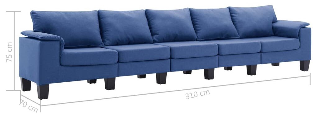 Sofa VLX 5-Seater 287104, mėlyna, 70 x 310 x 75 cm