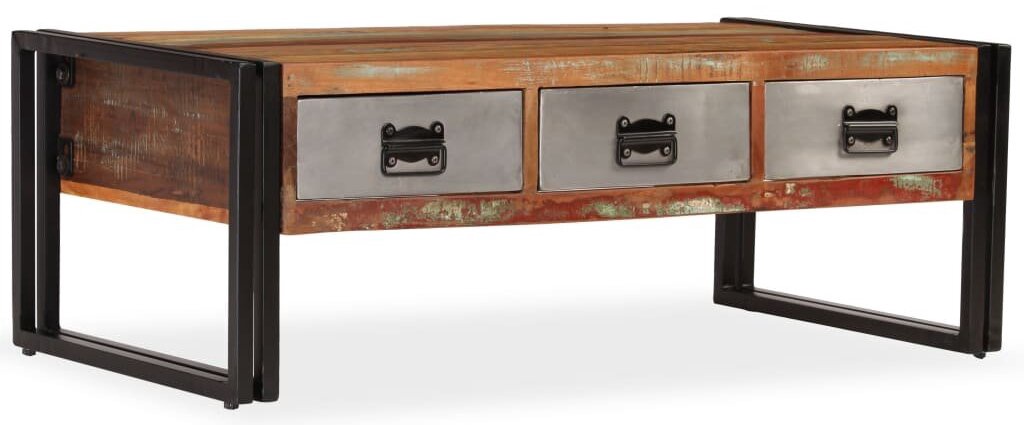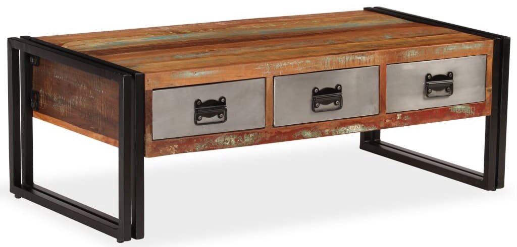 Kavos staliukas VLX Solid Reclaimed Wood 244941, juodas/medžio, 1000 mm x 500 mm x 350 mm