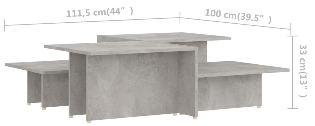 Kavos staliukas VLX Concrete, pilkas, 1115 mm x 500 mm x 330 mm