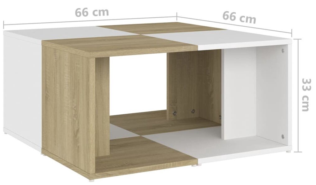 Kavos staliukas VLX Sonoma Oak, rudas/baltas, 660 mm x 660 mm x 330 mm
