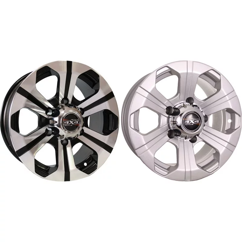 Литые, алюминиевый сплав, 5 / 6 болтов, диаметр 15 ", ширина 8 ", цвет серебристый, серебристый с черным.