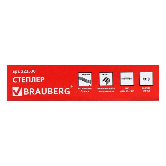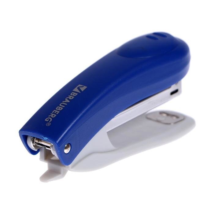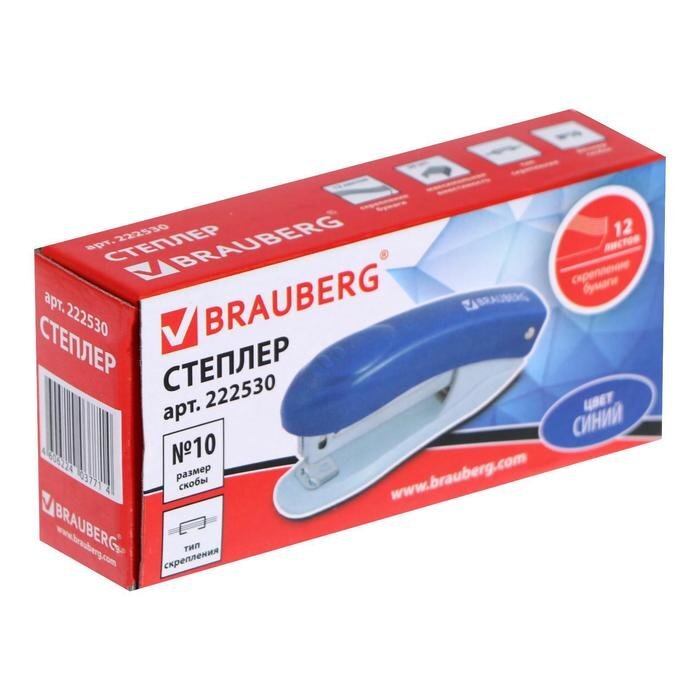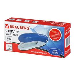 Степлер № 10 до 12 листов, BRAUBERG Einkommen, пластиковый корпус, встроенный антиСтеплер, синий