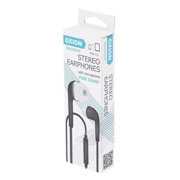 Наушники OXION HS230BK, вакуумные, микрофон, 100 дБ, 16 Ом, 3.5 мм, 1 м, чёрные
