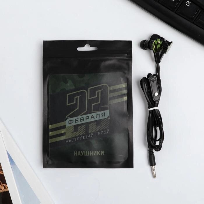 Наушники вакуумные в пакете 'Настоящий герой'с микрофоном, 1,2 м, 10 х 15 см