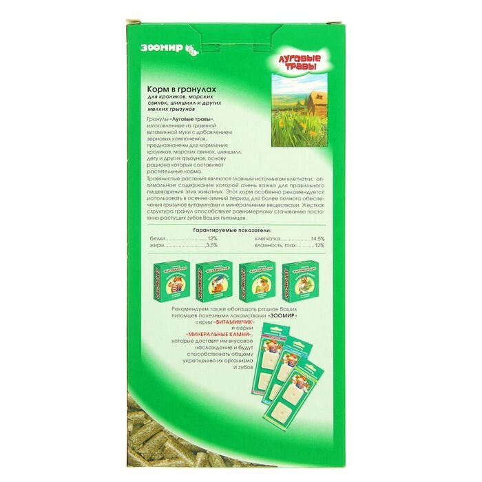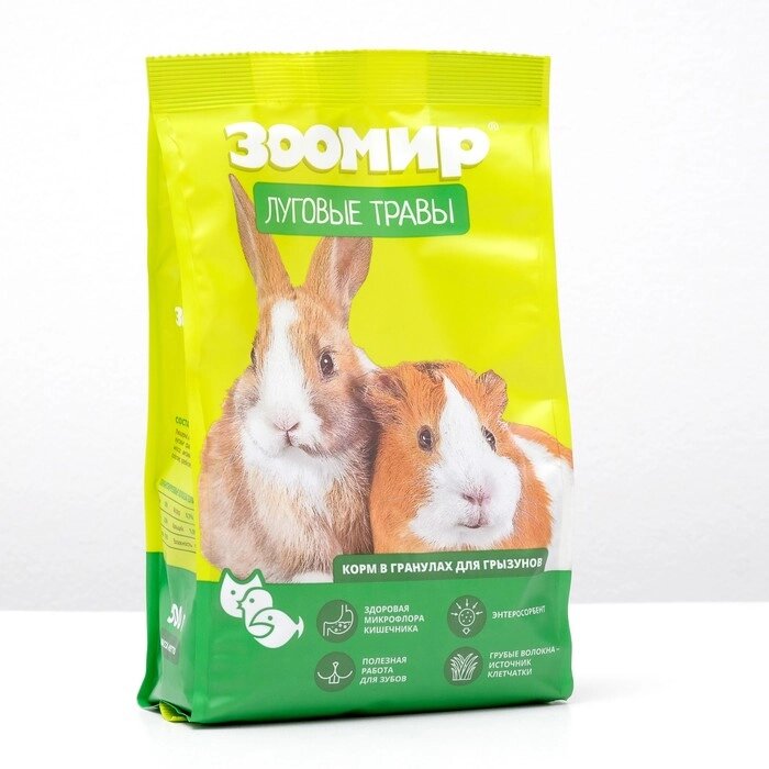 Корм "ЗООМИР Луговые травы" для кроликов и грызунов, гранулы, 500 г
