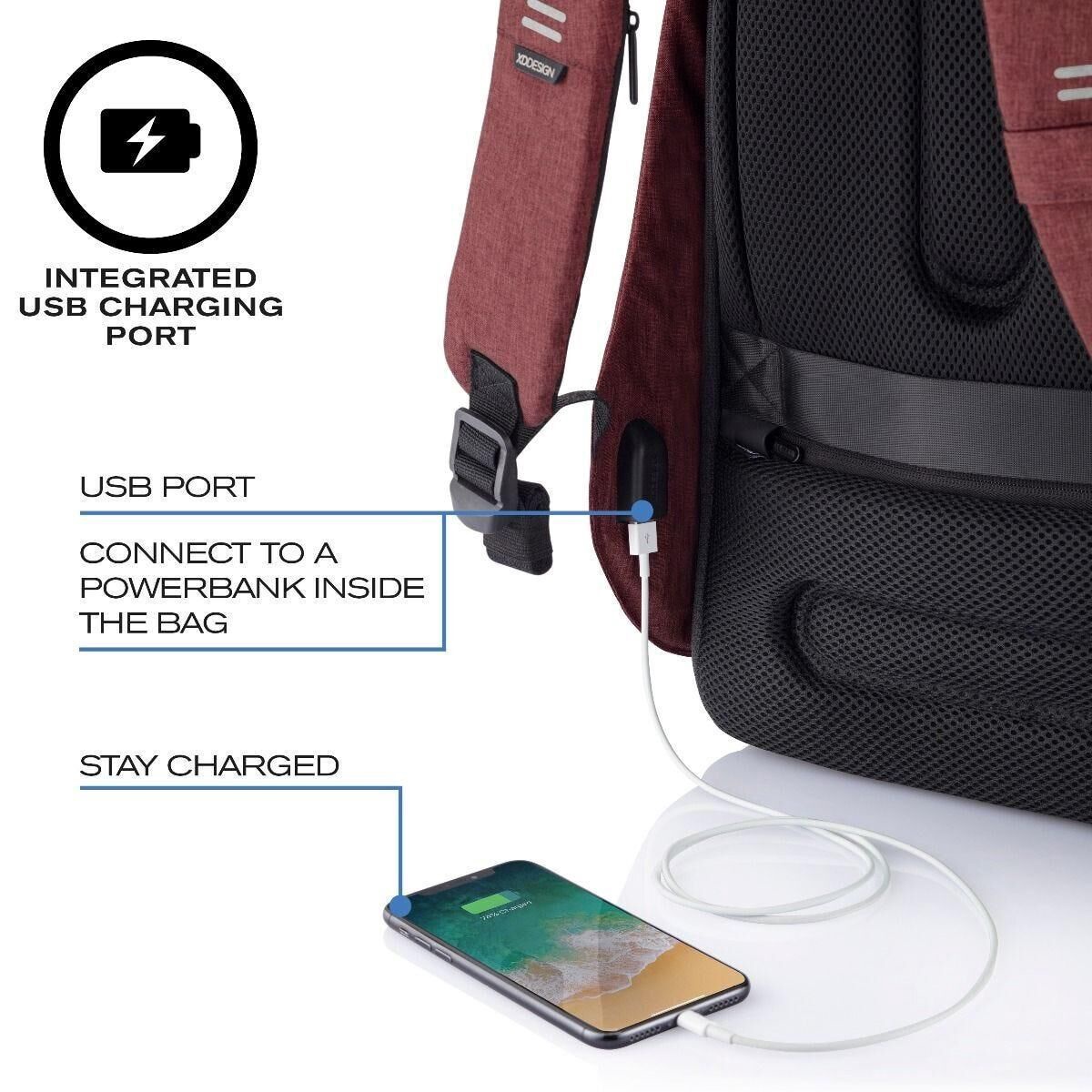 Туристический рюкзак XD Design Bobby Hero Anti-Theft Backpack, красный, 11.5 л