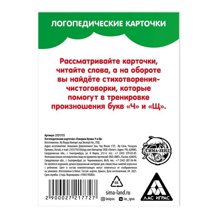Обучающие логопедические карточки «Говорим буквы Ч и Щ», размер карточек 63 87 мм