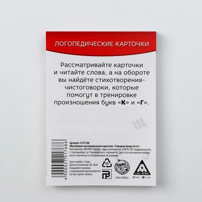 Обучающие логопедические карточки «Говорим буквы К и Г», размер карточек 63 87 мм