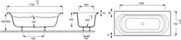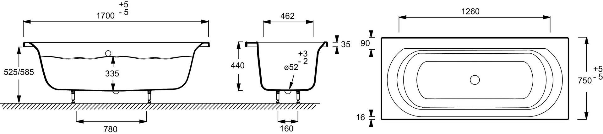 Размер ванны (Д.;Ш.;В., см.): 170x75xот 52.5 до 58.5 см(на ножках)