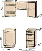 - Ширина кухни 60 см