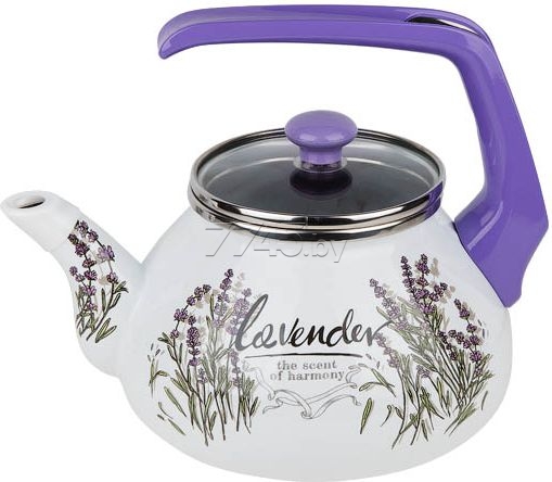 Чайник стальной эмалированный 2,2 л PERFECTO LINEA Цветок лаванды (52-390222) подходит для всех типов плит, включая индукционных. Толщина стенок 0,8 мм. Изготовлен из 5-тислоев: 1) Внутренний покровный слой эмали; 2) Внутренний грунтовый слой эмали; 3) Стальная основа; 4) Наружный грунтовый слой эмали; 5) Наружный покровный слой эмали. Эмалированная стальная посуда не вступает в реакцию с едой, гипоаллергенна, безопасна, гигиенична и легко моется, можно мыть в посудомоечной машине, устойчива к царапинам и пожелтению, подходит ко всем типам плит.