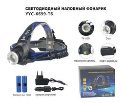 Фонарь налобный аккумуляторный с зарядкой от 220В и 12В 6699-T6