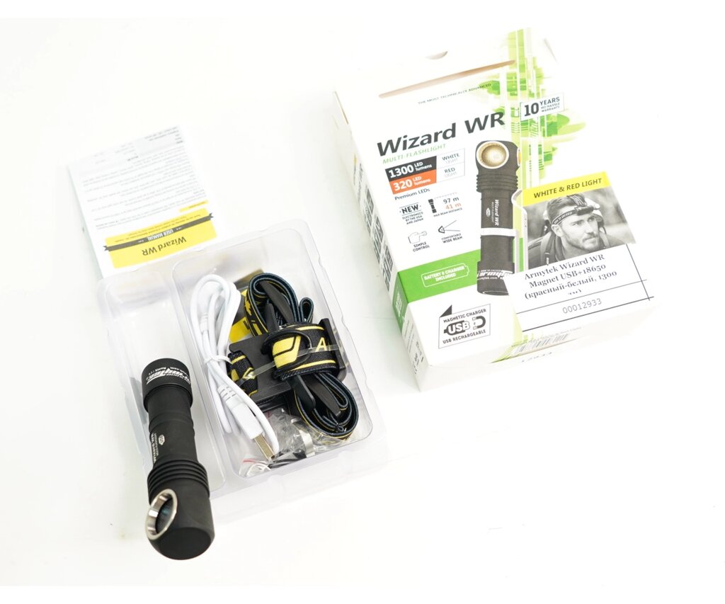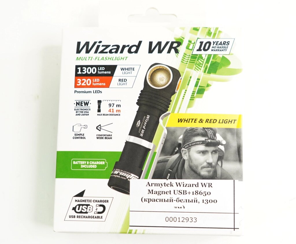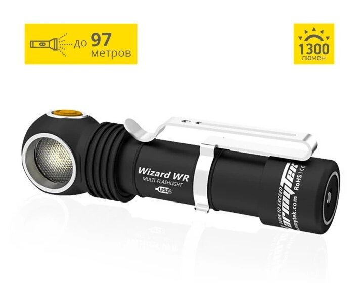 Фонарь налобный Armytek Wizard WR Magnet USB+18650 (красный-белый, 1300 лм)