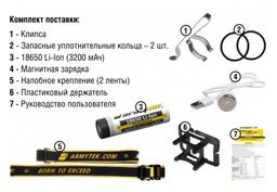 • Комплектация: фонарь, налобное крепление, пластиковый держатель, уплотнительные кольца - 2 шт, клипса, магнитная зарядка, 18650 Li-Ion (3200 мАч), инструкция