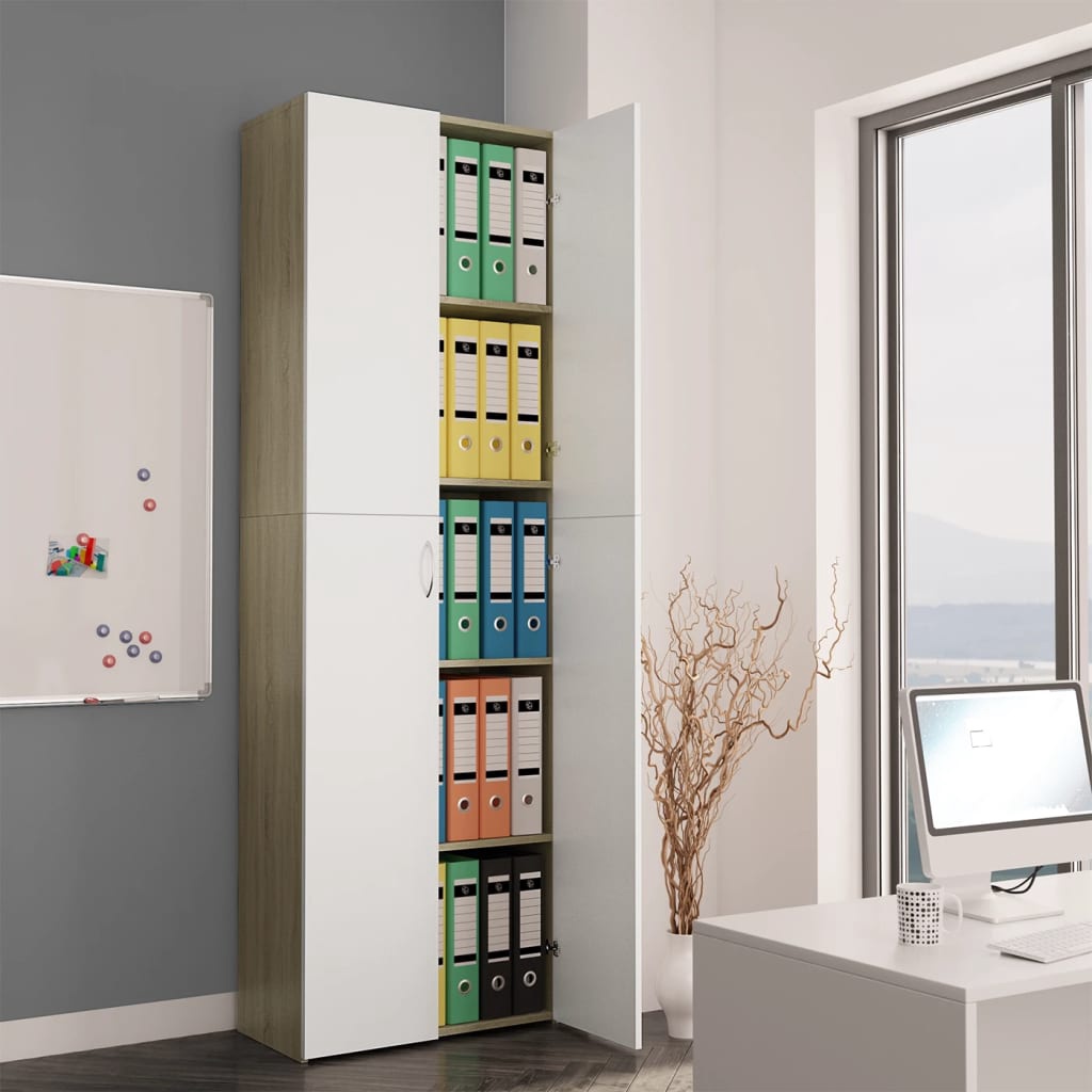Офисный шкаф VLX Chipboard 800302, белый/дубовый, 60 x 32 x 190 см